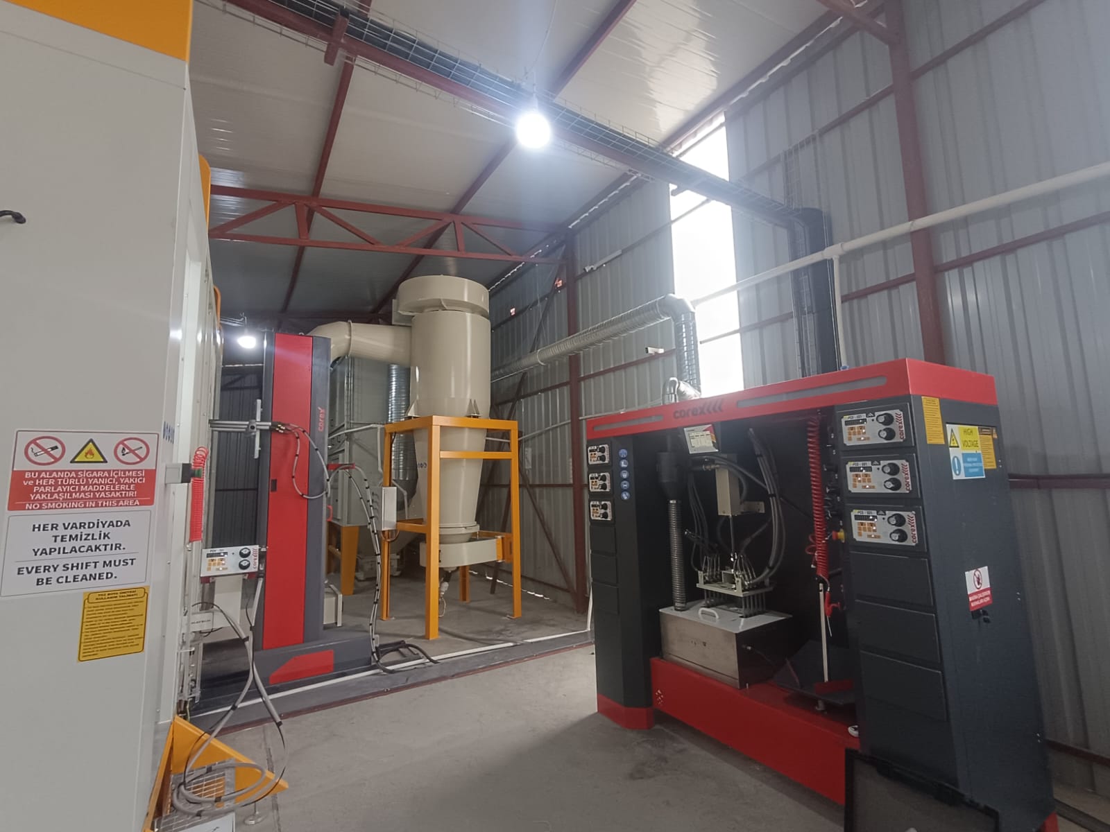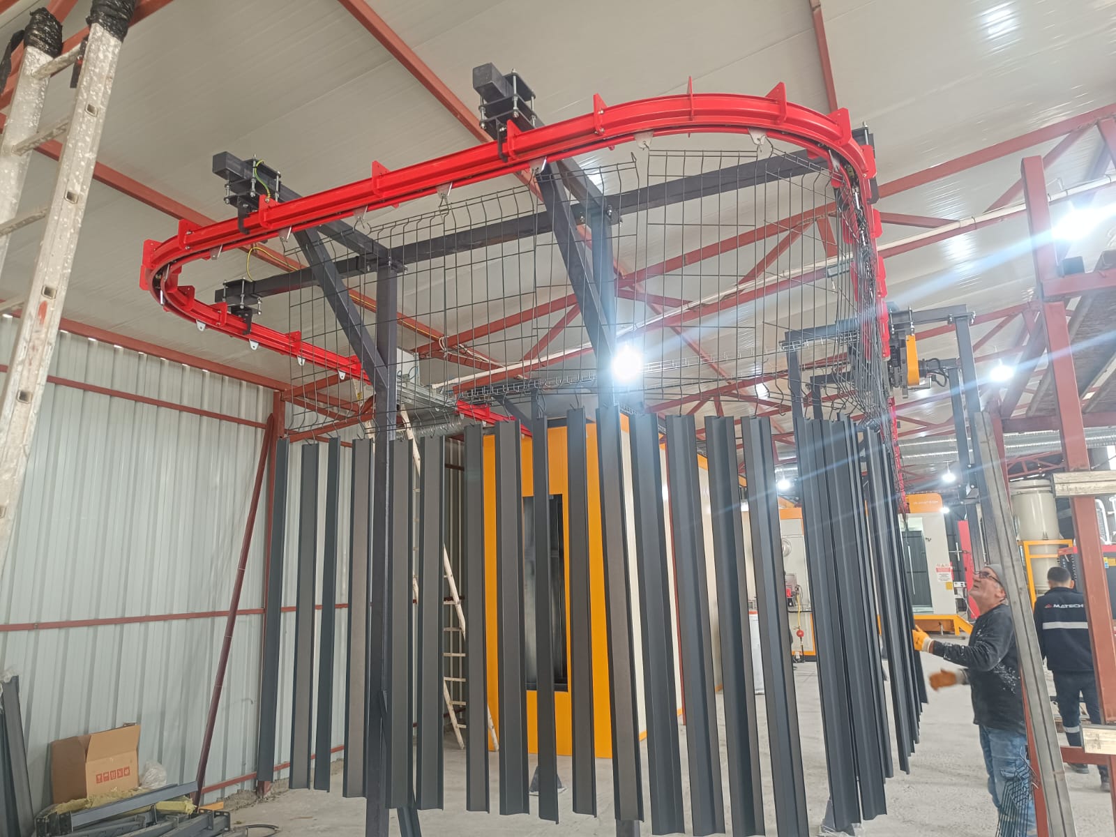 Aydın Çit’in üretim ihtiyaçlarına uygun olarak tasarlanan yıkama hatsız, kardan konveyörlü toz boya tesisi başarıyla kurulmuş ve devreye alınmıştır. Tesis; toz boya kabini, robotik uygulama sistemi, boya merkezi, otomatik toz boya tabancaları, kardan konveyör ve pişirme fırınından oluşan entegre bir yapıya sahiptir. Proje, yüksek yüzey kalitesi, verimli üretim ve sürdürülebilirlik hedefleri doğrultusunda hayata geçirilmiştir.
