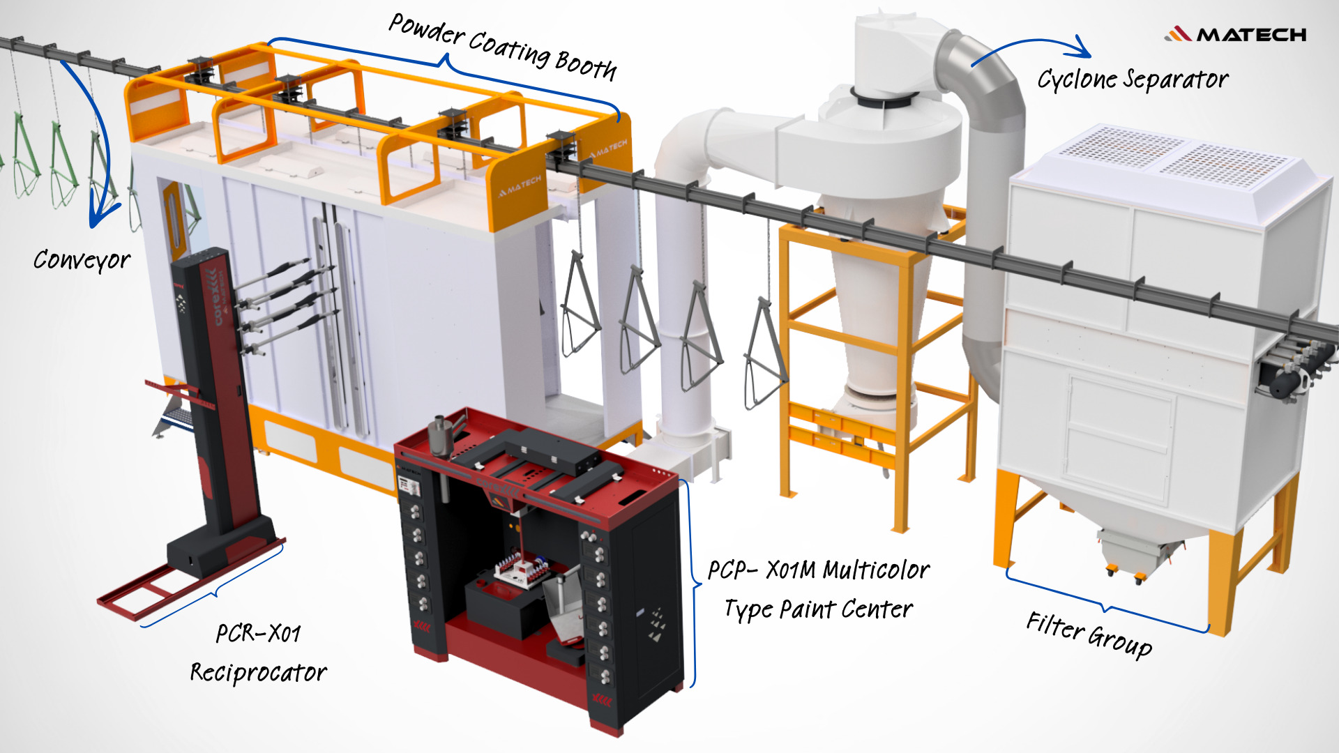 Siklon Ünitesi: Boyama kabininde püskürtülen fakat yüzeye tutunmayan toz boyalar, siklon sistemi ile toplanır. Bu toz, tekrar boya merkezine yönlendirilerek geri kazanım sağlanır. Böylece boya kaybı minimuma indirilir.