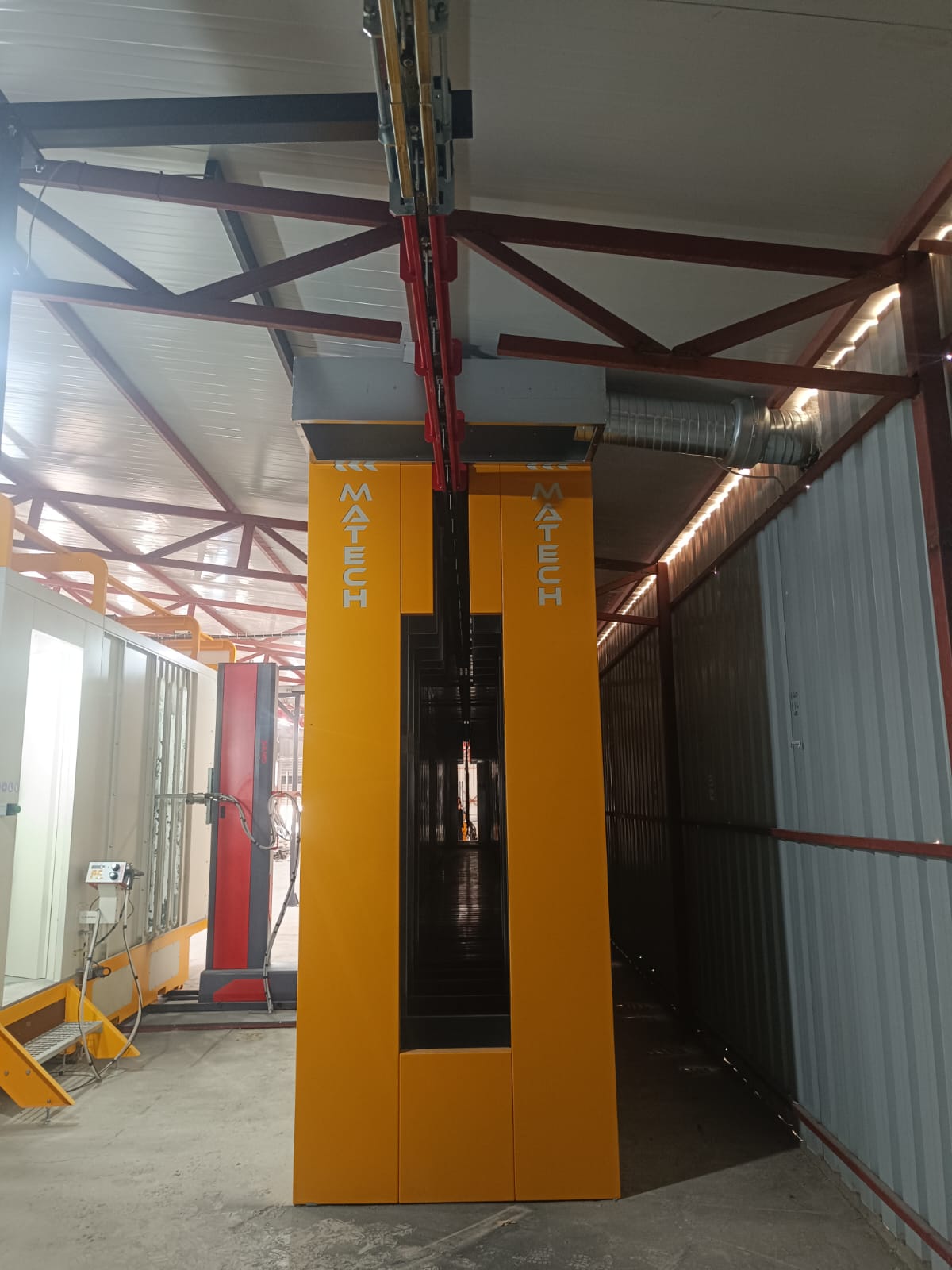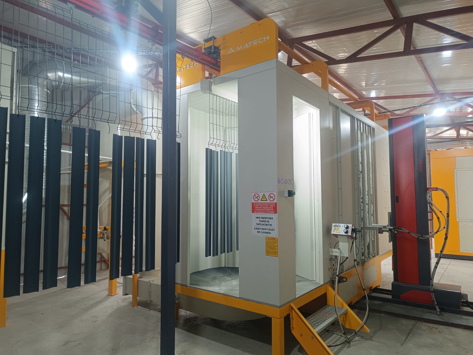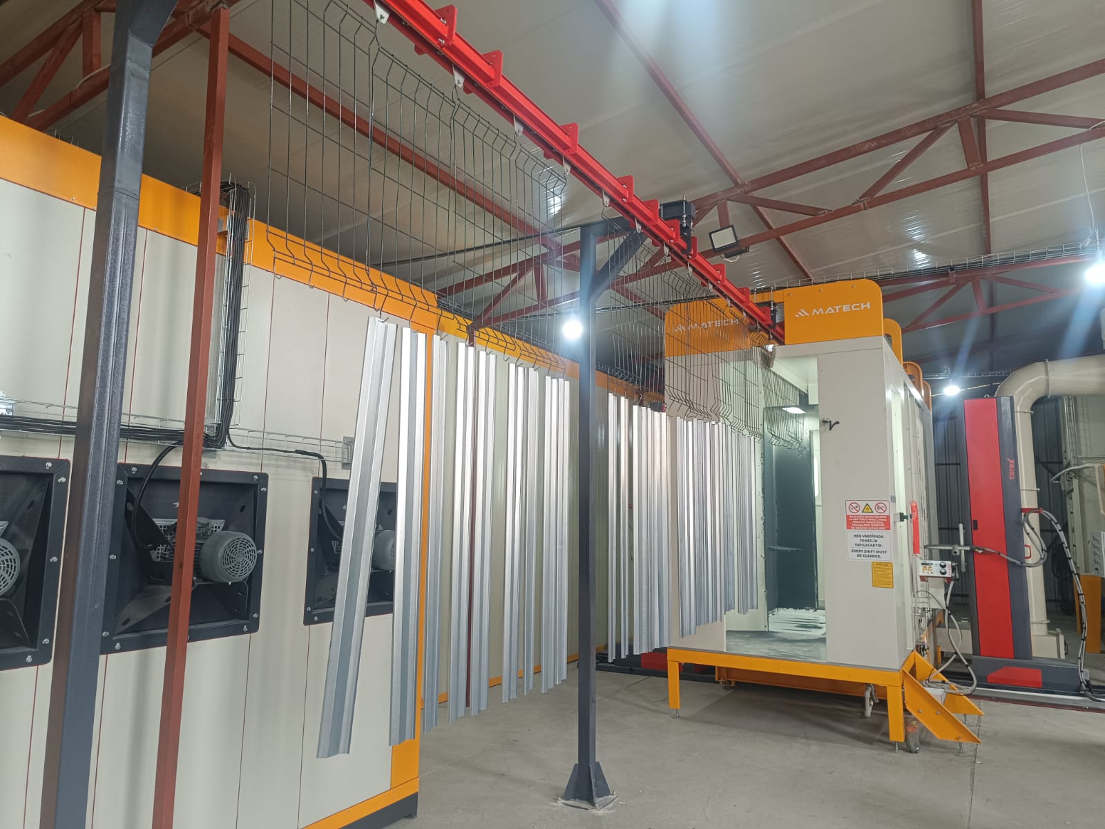 Aydın Çit’in üretim ihtiyaçlarına uygun olarak tasarlanan yıkama hatsız, kardan konveyörlü toz boya tesisi başarıyla kurulmuş ve devreye alınmıştır. Tesis; toz boya kabini, robotik uygulama sistemi, boya merkezi, otomatik toz boya tabancaları, kardan konveyör ve pişirme fırınından oluşan entegre bir yapıya sahiptir. Proje, yüksek yüzey kalitesi, verimli üretim ve sürdürülebilirlik hedefleri doğrultusunda hayata geçirilmiştir.